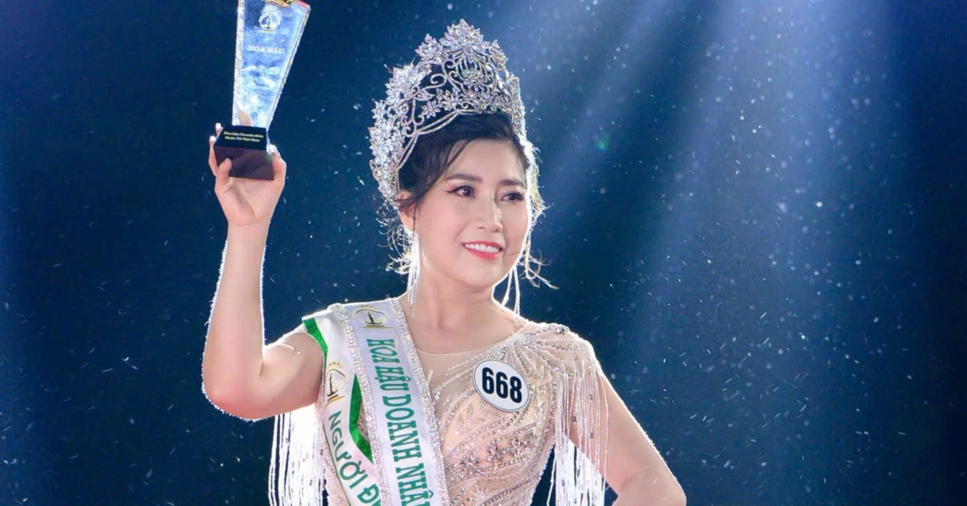 Các khánh mời diện trang phục nâu, be đồng điệu. Hoa hậu Đoàn Thiên Ân diện váy voan xếp tầng, búi tóc cao.