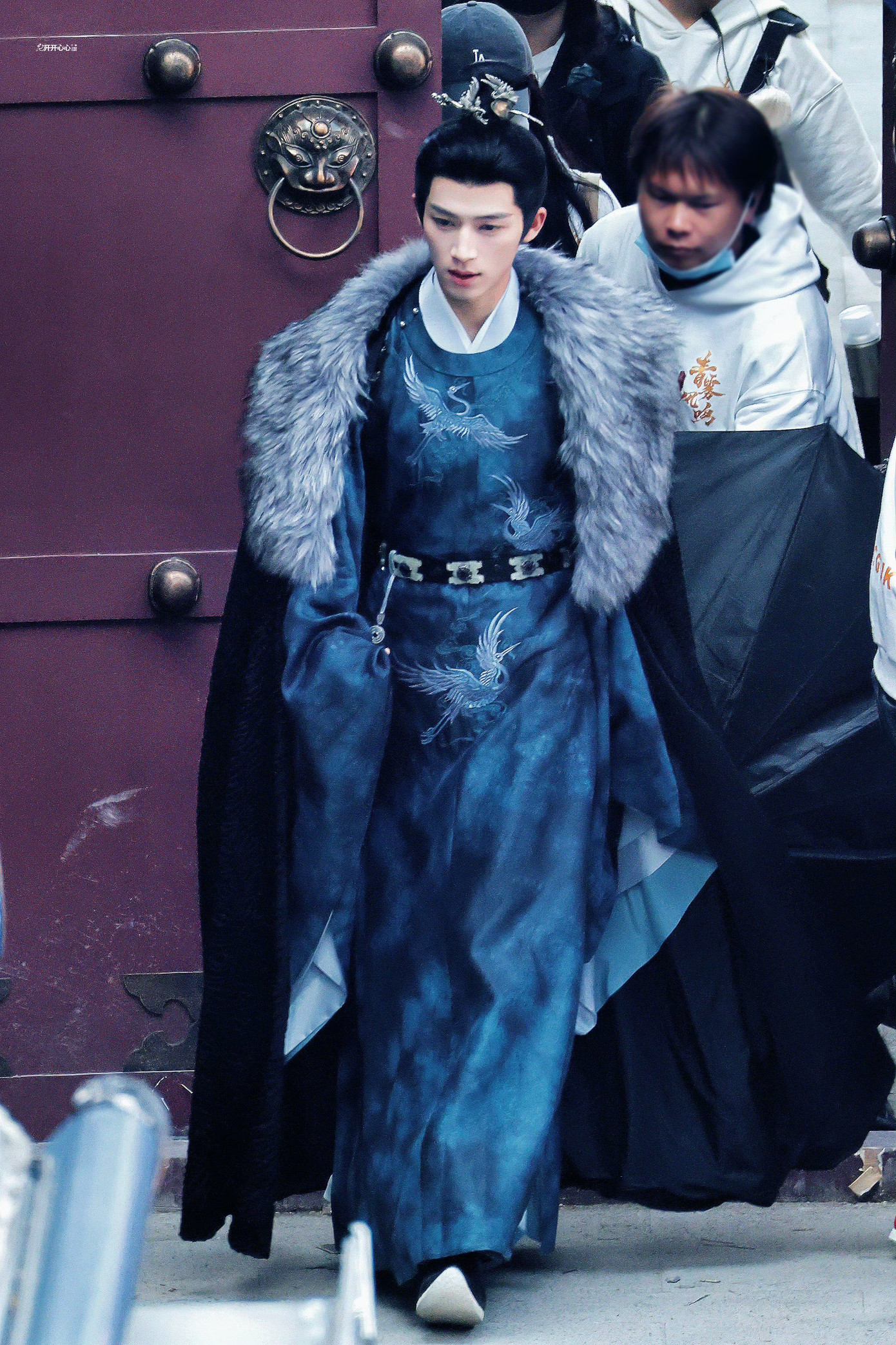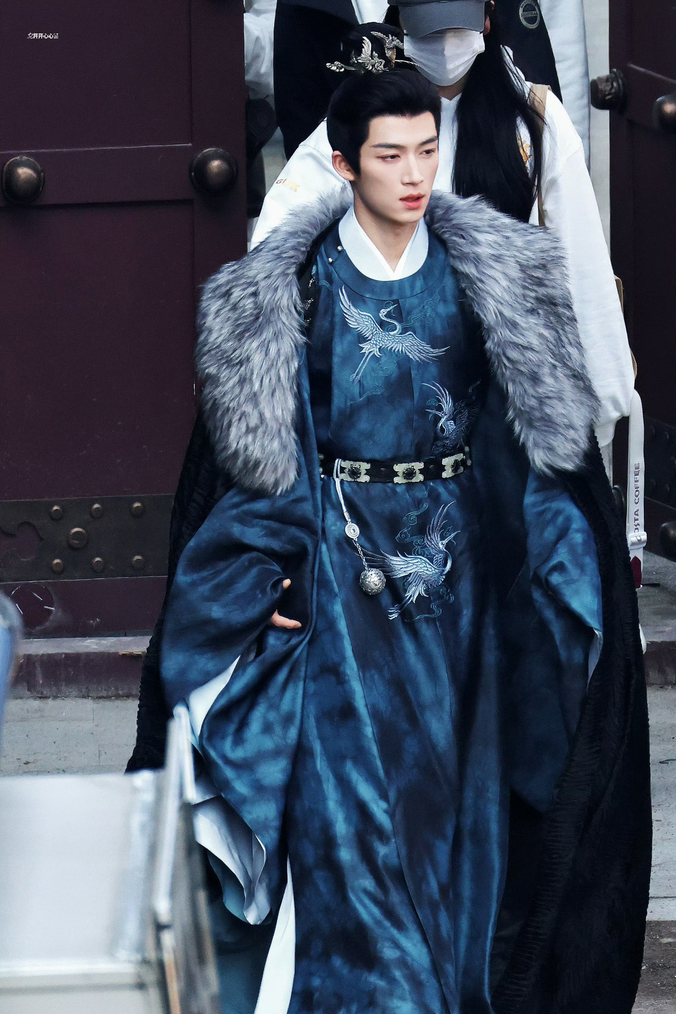 Ở chiều ngược lại, Vương Tinh Việt cũng không hề kém cạnh khi lần đầu lộ diện với tạo hình Tiêu Hoài Cẩn, thái sử của Cục Linh Đài. Nam diễn viên khoác áo choàng lông tương đồng với Bạch Lộc, tạo cảm giác chemistry ăn ý ngay từ ngoại hình, kết hợp cùng kiểu tóc búi cao quen thuộc của dòng phim cổ trang. Dưới lớp phục trang tưởng chừng giản dị, Vương Tinh Việt mang đến khí chất điềm đạm, ánh mắt trầm ổn, bước đi dứt khoát, toát lên vẻ ngang tàng và chính trực của một vị quan văn mưu lược.