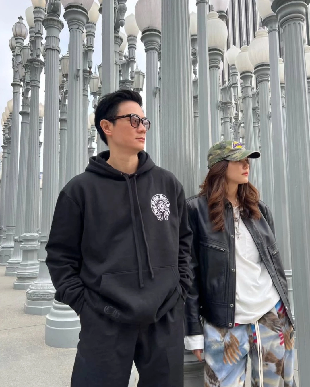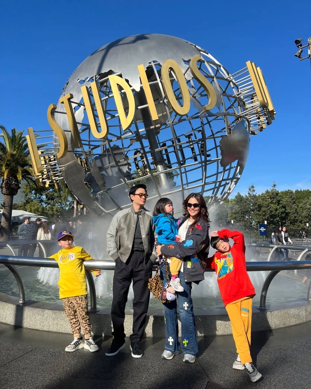Cặp sao tạo dáng để các con chụp ảnh trong chuyến đến Mỹ hồi đầu năm. Họ hẹn hò từ 2009, kết hôn hồi 2015. Năm 2018, vợ chồng đón con trai sinh đôi, thường gọi Thunder (Sấm, tên thật Saifah Rangsisingpipat) và Storm (Bão, Bhayu Rangsisingpipat). Tháng 3/2022, họ có thêm con gái Abigail.
