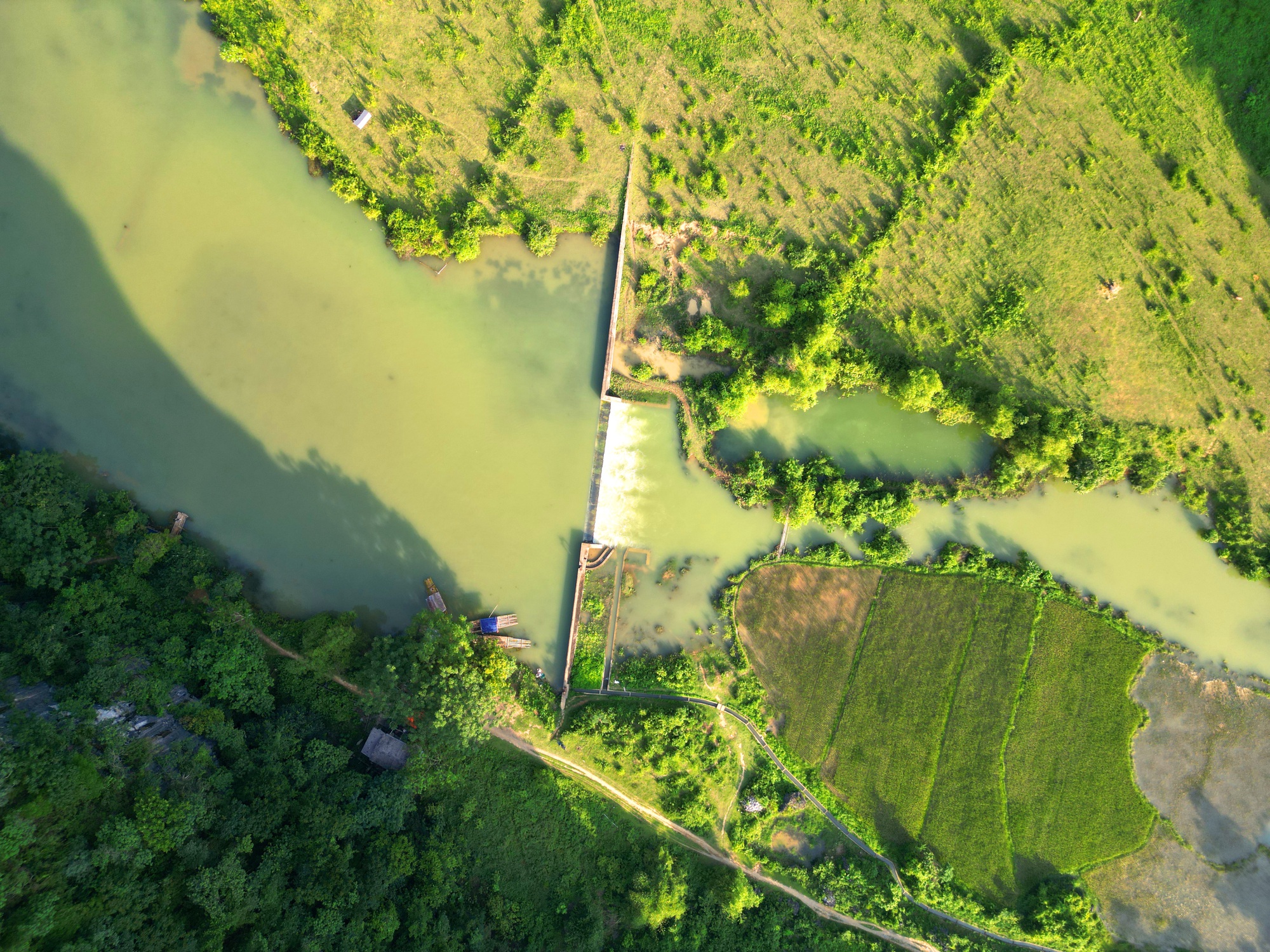 Hồ nước mà du khách nhắc tới thực chất là khu vực quanh Đập Bắc Mỏ – một công trình thủy lợi phục vụ sản xuất nông nghiệp của địa phương. Không được xây dựng với mục đích du lịch, cũng chưa có hạ tầng tham quan bài bản, nhưng chính điều đó lại tạo nên sức hút riêng cho nơi này.